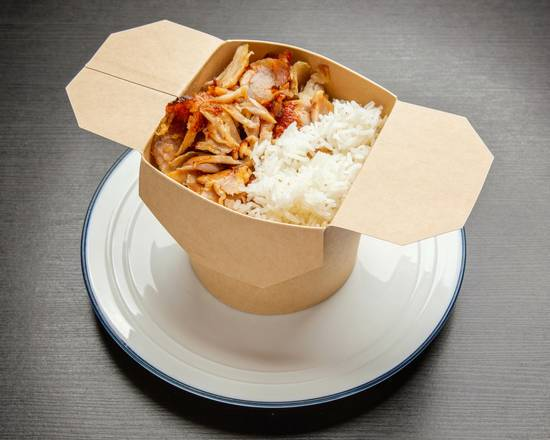 Arroz con doble pollo o ternera y salsa